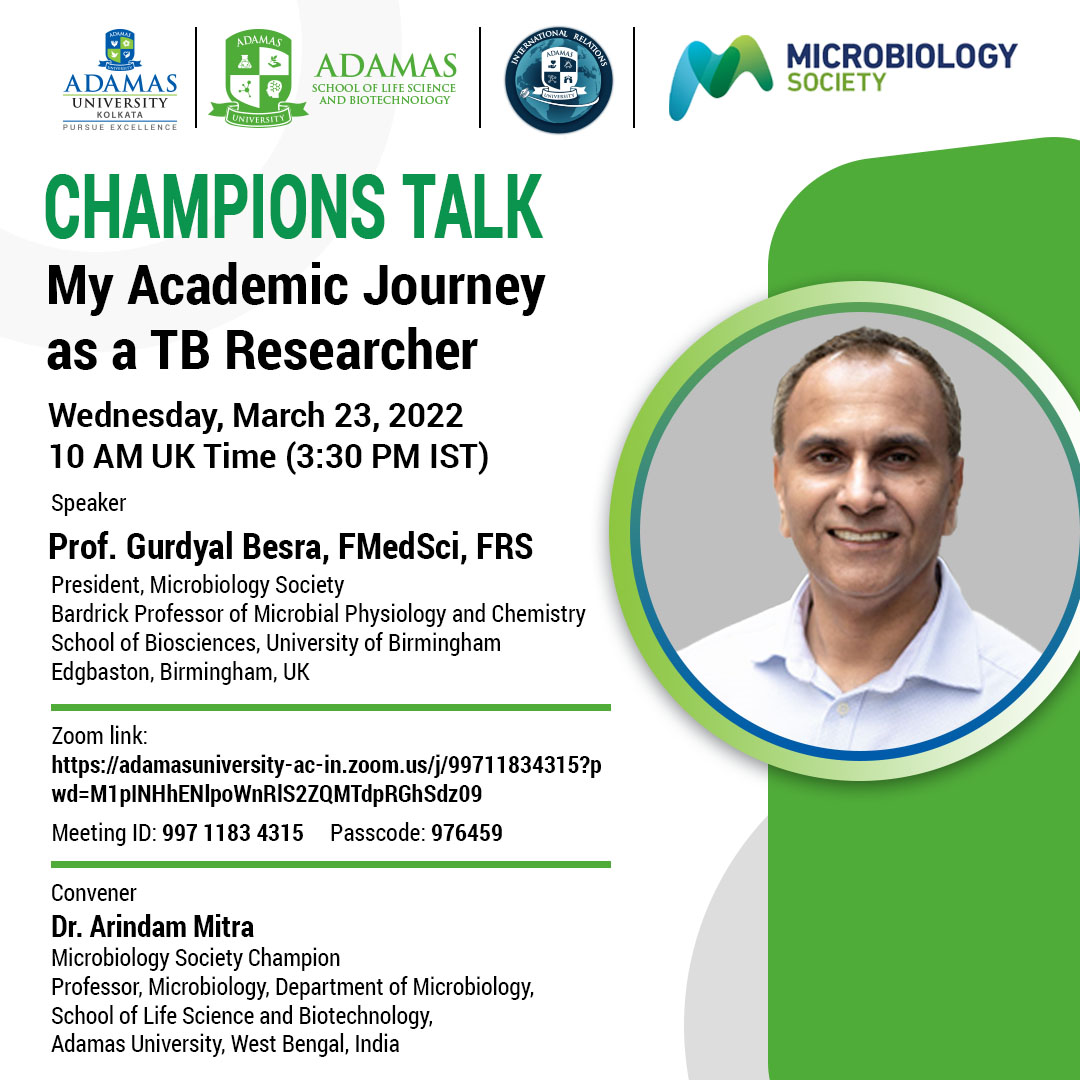 | 23 March 2022 | Champions Talk: My Academic Journey as a TB Researcher | Zoom event | Arindam Mitra |